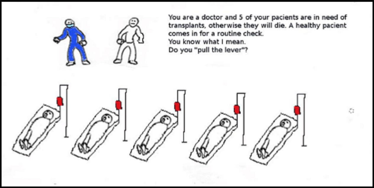 Does this transformation now license the surgeon to harvest the organs of one healthy patient to save the five?