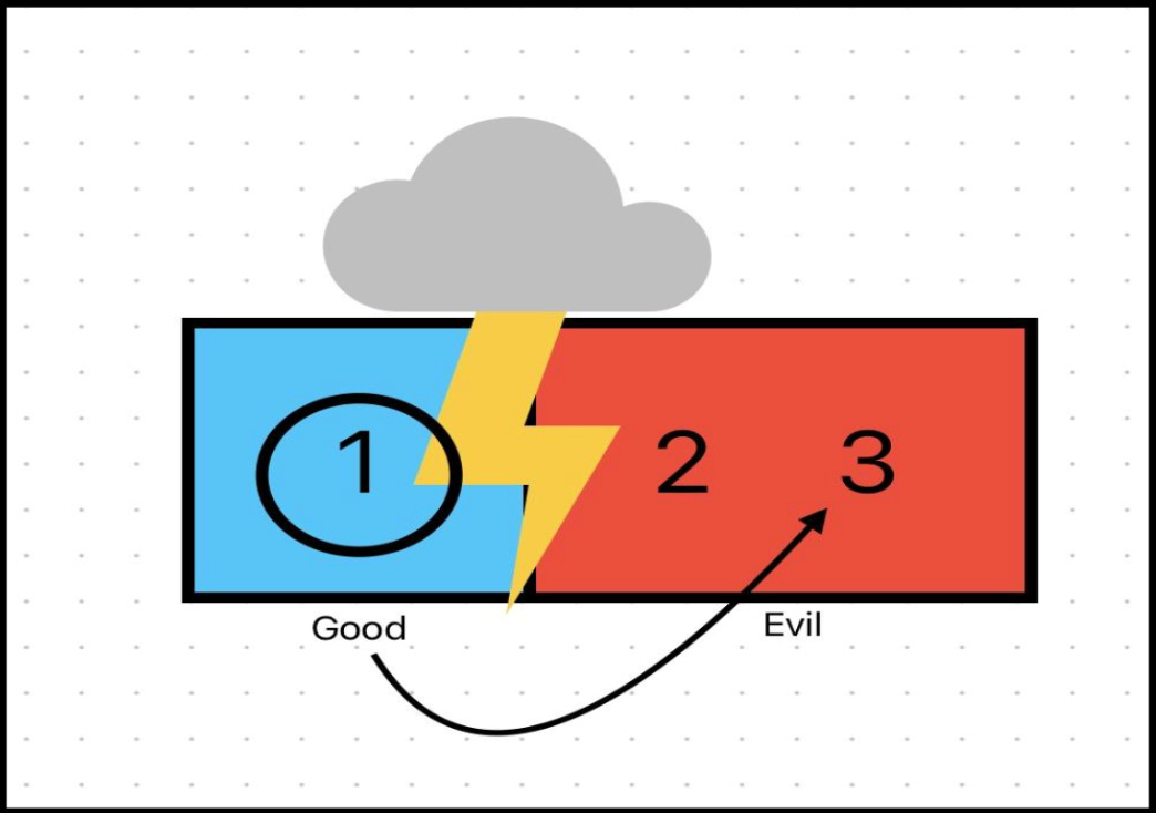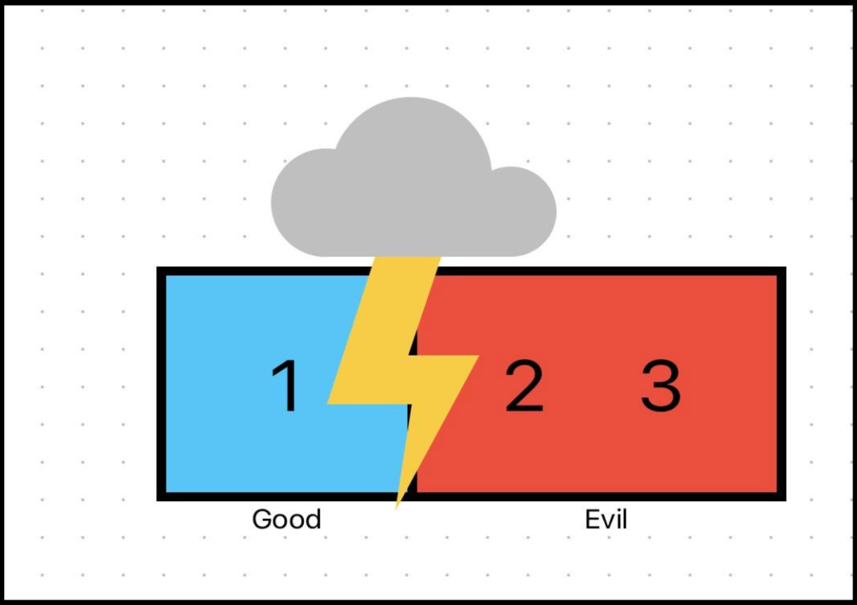 Diagram 1 represents the basic 3-option moral possibility space. A > B > C where > represents comparative choiceworthiness. Option 1 (labeled “Good”) represents what is choiceworthy in ideal conditions—choiceworthy unconditionally. Options 2 and 3 (labeled “Evil”) represent what is not choiceworthy in ideal conditions, but only conditionally choiceworthy when nonideal conditions prevent choosing the unconditionally good option.